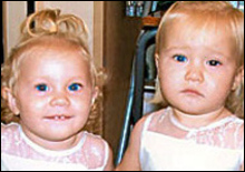 Фотография полуторагодовалых сестер-близнецов Софи и Молли Кук была сделана на свадьбе знакомых родителей девочек. Полученное после проявки пленки фото выглядело странно: левый глаз одной из девочек, Софи, был не голубым, а абсолютно черным.