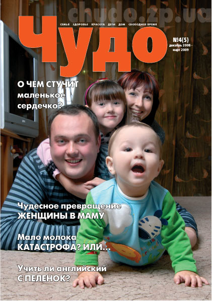Не так много в настоящее время детских изданий, которые могли бы похвастаться таким позитивным настроем и полнотой интереснейшей информации, как запорожский журнал «Чудо». Тематика издания очень разнообразна – «наша семья», «здоровье», «ждем малыша», «мы растем», «леди клуб», «каталог товаров и услуг»… Здесь и консультации врачей, и советы педагогов, и статьи психологов – вся информация предоставлена и проверена специалистами.