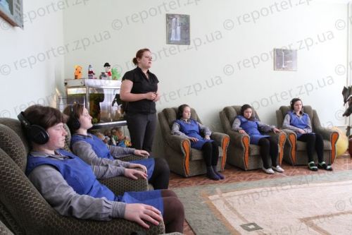 Но встречаются и более буйные воспитанницы. Когда с такой девочкой не могут справиться даже психологи (на фото - релаксация под руководством специалиста) и социальные работники, воспитанницу приводят к начальнице - настоящей "железной леди" Мелитопольской колонии, которая как настоящая хозяйка держит все здесь под контролем.