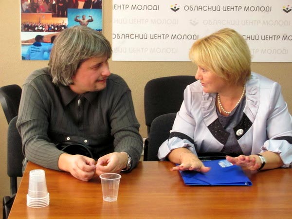 Андрей Пинчук - папа воспитатель в детском доме семейного типа и Людмила Гончаренко - директор КУ "Запорожский детский дом-интернат". Судя по фотографии - диалог возможен!