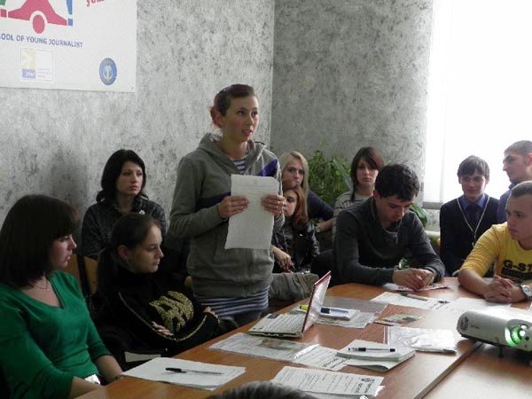 С помощью нехитрого задания для студентов мы увидели как одну и ту же информацию можно убедительно подать с противоположными установками (кстати ребята очень профессионально отработали эту "заказуху" за искренние аплодисменты их коллег и представителей фонда), а потом вместе рассмотрели на реальных примерах из репортажей Запорожских СМИ как порой однобоко освещаются благотворительные акции.