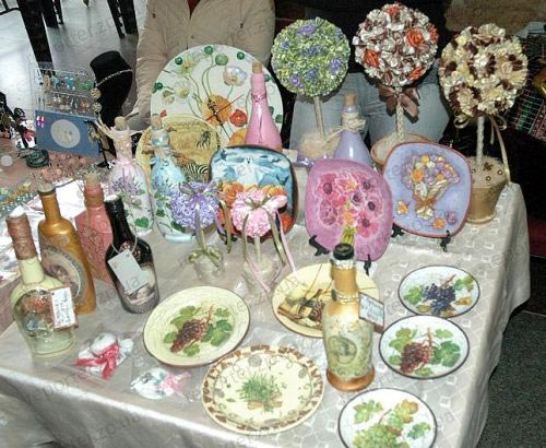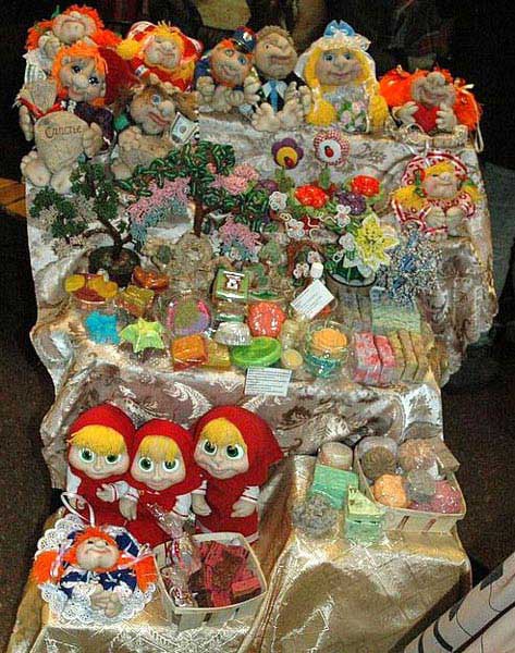Свечи, сережки, кольца, куклы, талисманы, шарфики, сумочки, деревья радости, браслеты из бисера… это еще не полный список представленных работ.