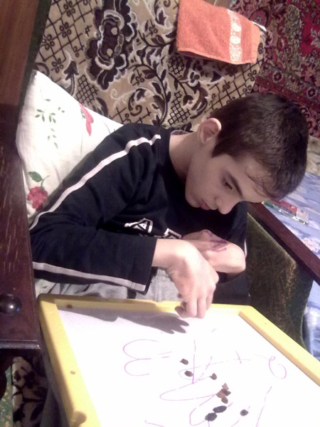 «Мы ведь с Сашей вдвоем живем, помочь некому, а он уже мальчик большой и носить его на себе мне одной очень тяжело. Ведь у Саши помимо ДЦП ещё и очень высокий тонус мышц. Чтобы его одеть и обуть мне приходится приложить не малые усилия, ведь ему тяжело согнуть и разогнуть руки и ноги. После курса реабилитации грязями в санатории ХАДЖИБЕЙ (г. Одесса), Саша может брать ложку, карандаши, ползать по дивану, его речь становится более внятной, движения менее резкими. Ведь вы поймите, когда тонус высокий, Сашка даже спит с поджатыми ногами, ему больно. Постоянно больно».