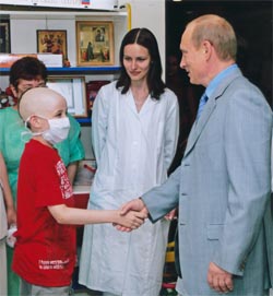 А вот вам еще одна такая история. Жил в Калужской области мальчик по имени Дима Рогачев. И вот однажды он заболел. Врачи из Калуги поставили диагноз – лейкоз. И сказали, что надо ехать в Москву, потому что в Калуге такое не лечат. Дима не хотел ехать и согласился только на том условии, что в Москве ему удастся поесть блинов с Путиным.