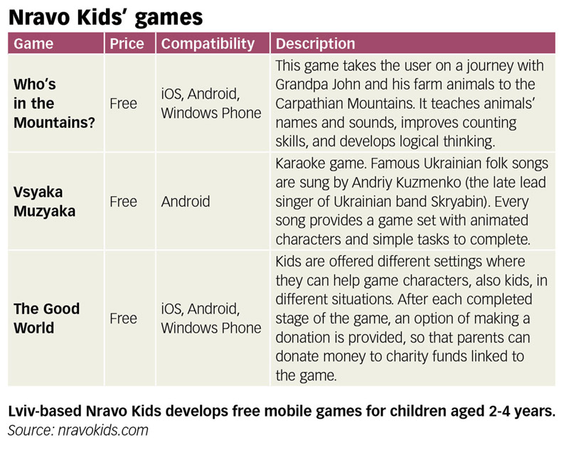 Four years ago Lviv-based mobile game developer Nravo made only adult games. But that changed when company CEO Andriy Tabachyn and his wife Nataliia Tabachyn became parents, and last summer Nravo decided to add children's games to its product line.