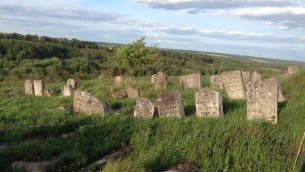 Weathered Jewish gravestones above the tomb of Nathan, Rabbi Nachman‘s disciple, Bratslav, Ukraine, May 10, 2017. (Sue Surkes)