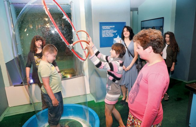 Children from an orphanage make soap bubbles on July 7 during a trip to the Water Museum in Kyiv.