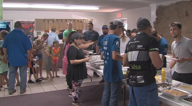 Members of the public and the World Without Orphans Bike Tour ate lunch together at the Lakeview Church of God. (Source: RNN Texoma)