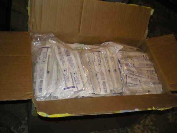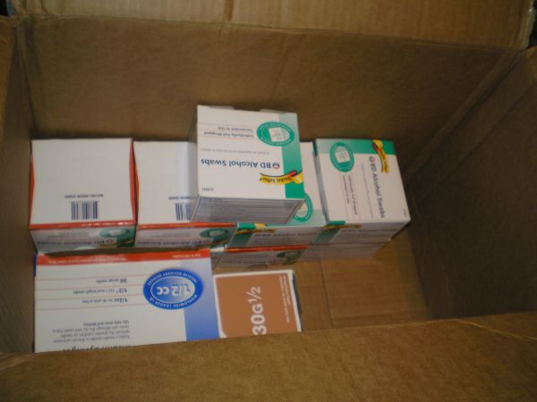 Благодарим Викторию Семенюк за целый ящик инсулиновых шприцев и спиртовых салфеток. Было принято решение поделить передачу следующим образом: часть инсулиновых шприцев (примерно 1/4) – в отделение онкогематологии, остальные – в отделение реанимации. Спиртовые салфетки поделили между отделением реанимации (его областной выездной бригадой) и детской городской выездной реанимационной бригадой.