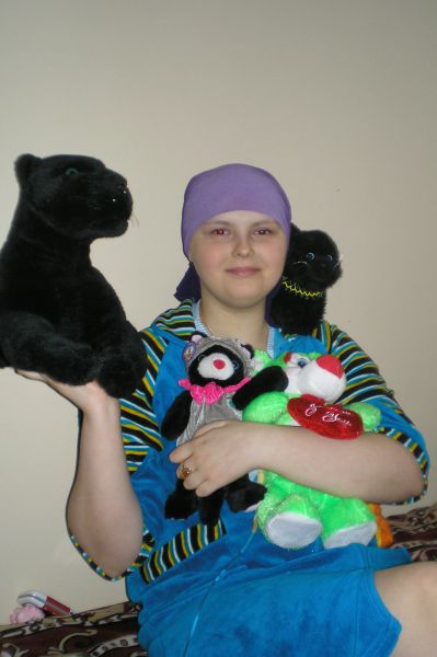 Алинка Дрыждь… Тихая девочка, всегда отвечающая, что все у нее потихоньку. Большая любительница мягких игрушек и своего кота Томаса… Алинке было очень тяжело первый месяц после рецидива: были и слезы, и истерики, и требования забрать ее домой и дать спокойно умереть… Сейчас в ней чувствуется такая внутренняя сила и спокойствие… Она прошла как раз половину лечения… вчера закончила очередной блок метатрексата, впереди 2 недели ожесточенной борьбы за жизнь… Анализы будут крайне низкие, нужен будет граноцит, нужен будет тромбоконцентрат. А и денег у семьи нет, и по препаратам крови у больницы долг на 8000 грн, по этому получить эту дозу тромбоконцентрата будет не легко… Но она справиться, обязательно справиться! Только ей очень нужна наша поддержка!