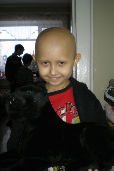 Вовка Шкрябка является самым большим моим поклонником в отделении :). И обнимается (хотя вообще-то он этого не любит), и игрушки все стаскивает, чтоб похвастаться, и сзади подбегает и глаза мне закрывает, крича "угадай кто?". И конечно, как настоящий мужчина он помогает мне проехать по отделению. И как только я дома без такого помощника справляюсь?!! К сожалению, дела у моего помощника плохо… несмотря на долгое и упорное облучение, на химию, доводившую пацаненка до реанимации, опухоль не отступает… Во время последней поездки в Москву профессор Желудкова признала, что сделала уже практически все, что могла…Вовке очередной раз сменена схема лечения, но если и она не поможет, то… Конечно же мы не верим в это "то", конечно же мы будем молиться чтоб новая схема помогла, но все же будем искать клинику, которая сможет принять Вовчика на лечение если…