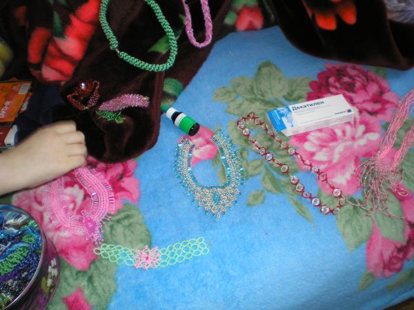 Алина Дрыждь продолжает лечение… Алинка у нас удивительная мастерица. Как не зайдешь к ней в палату – все что-то из бисера плетет… но как-то ни разу не посчастливилось мне увидеть готовые изделия… а тут попросила показать и просто дух перехватило – такая красота!!!