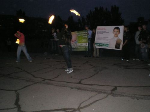 Три недели назад в Запорожье был проведен первый в своем роде уличный концерт в поддержку Владика. Мы собрали деньги, а главное заявили, громко заявили о существовании такого ребенка, которому остро нужна помощь. В этом ключе (привлечение внимания людей к проблеме) и было решено проводить последующий акции. И вот, 12 сентября под мелкий дождь группа волонтеров и неравнодушных молодых людей, желающих своим талантом помочь ребенку, собрались в центре города чтобы совершить «Марш жизни». Блеском огней (нас поддержала группа фаерщиков), стуком барабанов и плакатами, призывающими помочь, мы решили привлечь внимание запорожцев. После небольшого представления с огнями,