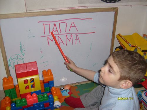 Наш красавчик становится все больше похож на того, каким он был до ТКМ. Темные кучери потихоньку выпрямляются и светлеют. Только поведение меняется – взрослеет парень, как-никак. Из последних перлов: увидел на сайте мое фото, где я с нашим главным врачом и министром охраны здоровья. Брови нахмурил, руки в боки «А что это за два мужика рядом с моей Ирочкой?!», Света смеется «Даня, ты что, ревнуешь?», а он «Конечно! Она только моя!!!». Вот так-то! Или Света собирается в магазин, Данька подходит «Мама, ты у меня самая красивая, самая хорошая, каалевищьна моя!», Света говорит «Спасибо, сыночек», а он «А я тоже очень красивый! Скажи мне «каалевич мой!»».