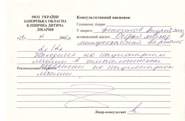 Мальчик проходит лечение в отделении гематологии Запорожской областной детской больницы (просп. Ленина, 70, 5-й этаж) - тел. +3 8 061 222-21-50