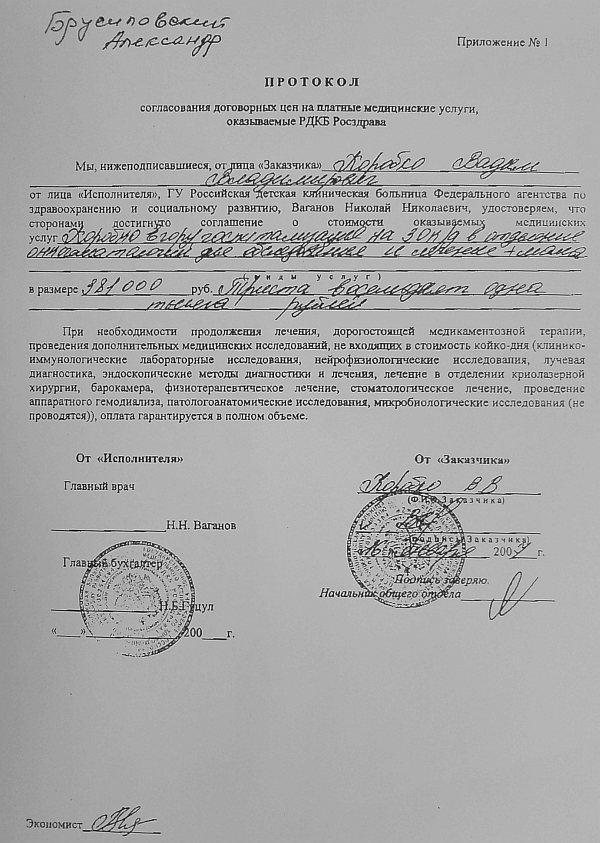 Счёт из РКДБ (г. Москва) - стоимость лечения за первый месяц