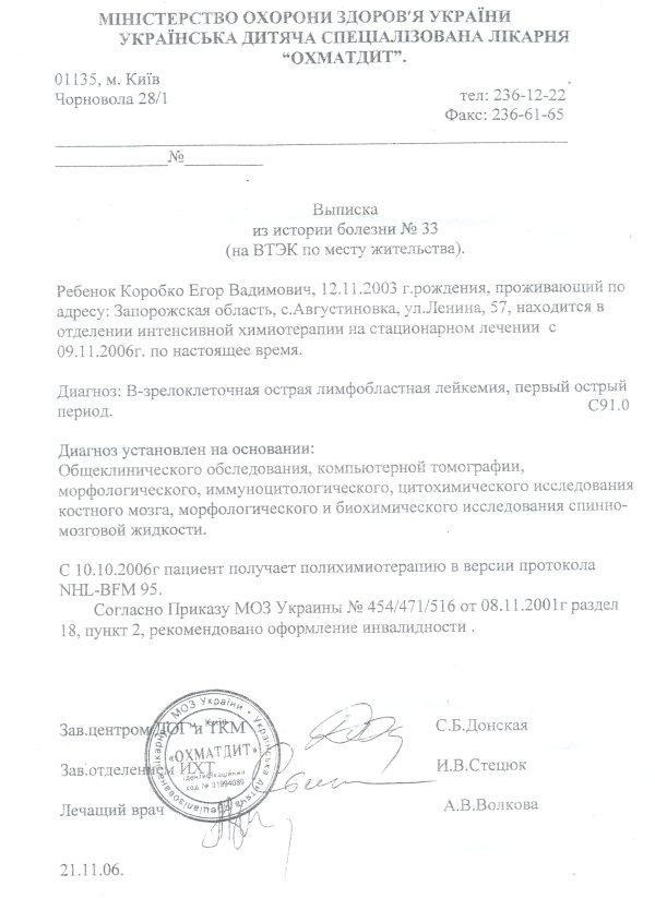 16 января 2007, 0:00 8767 Автор: Альберт Павлов www.deti.zp.ua Сбор средств закрыт! В июне 2007 Егор успешно окончил лечение в Москве, и признан совершенно здоровым человеком! Огромное спасибо всем, кто сделал это чудо реальностью - врачам, жертвователям, волонтёрам и Господу Богу!