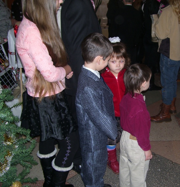 Затем все проследовали в зал, где после приветственных речей начался концерт. Выступали и дети, занимающиеся в кружках Дворца творчества, и юные таланты из приемных семей и ДДСТ. На праздничном концерте каждая семья имела возможность показать свои таланты. Тут были сказочные рождественские постановки, колядки, веселые танцевальные выступления, игра на музыкальных инструментах, чтение стихов и многое другое.