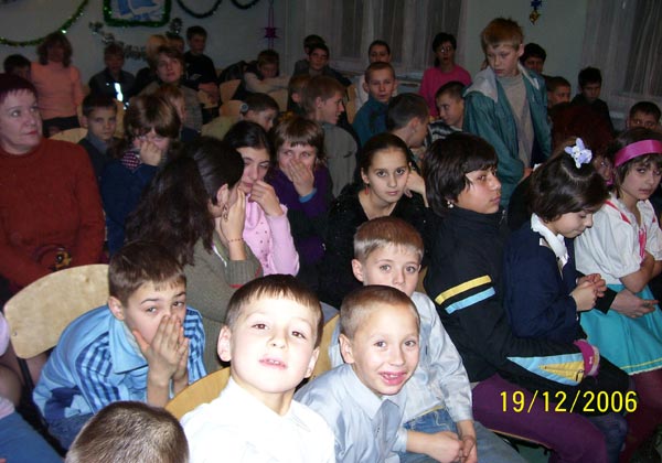 Дети подготовили концерт и получили сладкие призы, а спонсор интерната - комбинат "Запорожстал" вручил директору чек на сумму $5800 - на ремонт отопления и сантехники