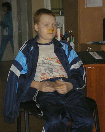 Андрей Охрименко (у мальчика гемофилия, он из интерната) на всех праздниках громче всех кричит "Спасибо", а на фотографиях хочет выглядеть серьезным и взрослым (хотя мальчик очень веселый).