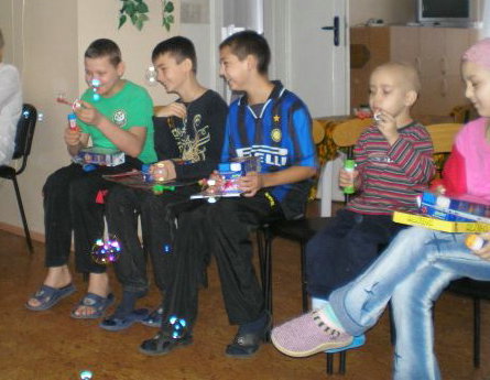 А 6 января мы ездили поздравить детишек с рождеством. Прикупили немного подарков и поехали поздравлять нашу детвору. Помимо самих подарков неимоверный восторг вызвали мыльные пузыри (как заметили медсестры "теперь на пару дней будет экономия на моющих средствах – на полу будет достаточно мыла").