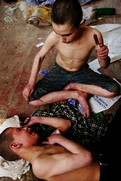 Кочуя по канализационным люкам, вокзалам и чердакам, маленькие бомжата вечерами «оттягиваются», нюхая клей и ядовитые растворители. У них — вши, гниды, чесотка. И это — в лучшем случае. У многих — туберкулез, гонорея, сифилис.