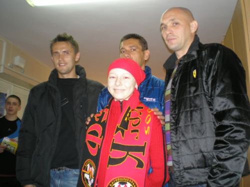 Одна наша девочка, Вика Козелева – страстная фанатка футбола. Она знает всех игроков основных Украинских команд (особенно болеет за донецкий «Шахтер»), смотрит все игры. Чтобы порадовать девочку с такими интересными увлечениями в канун восьмого марта мы рассказали о ней футбольному клубу «Металлург Запорожье». Ребята были очень удивлены и охотно согласились прийти поздравить Вику с наступающим праздником. Но когда узнали, в каком отделении лежит Вика и сколько там еще детей нуждается в поддержке, то решили подарить праздник всем нашим деткам.