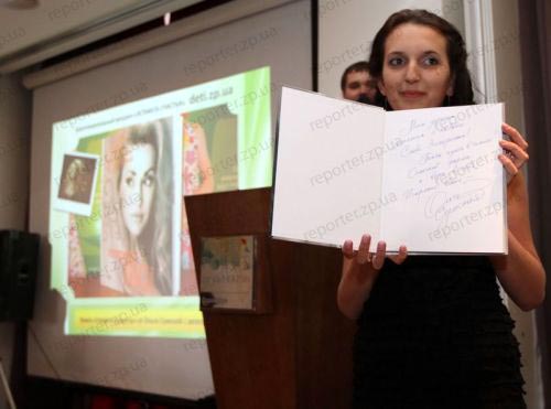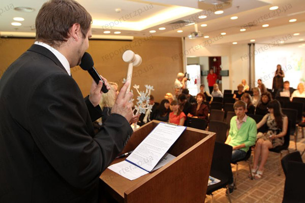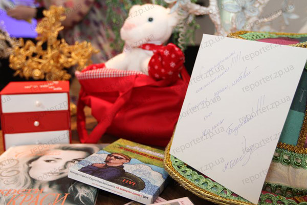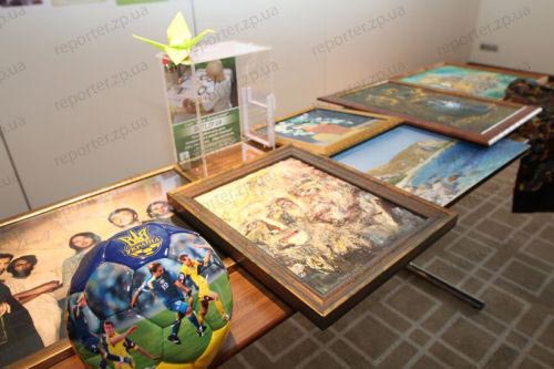 Сегодня, 30 мая, в Запорожье на благотворительный аукцион были выставлены личные вещи известных людей - в частности, платье жены запорожского мэра Лилии Син, концертная рубашка Олега Скрипки, а также эксклюзивный мяч с автографом Анатолия Тимощука с двумя билетами на Евро-2012. Всего аукцион собрал 14,2 тысяч гривен в помощь детям.