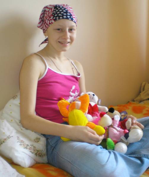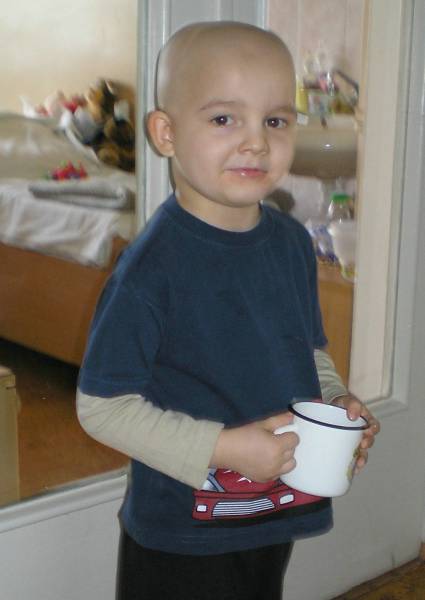 Лерочка Скрипник 3 мая начала второй протокол. Только недавно начавшие отрастать волосы снова посыпались… Лера не огорчается, только сожалеет, что пока не привезут ее шапочку, придется терпеть "цю ліньку". Одно расстраивает Лерочку – что опять не будет возможности заниматься с учителями, а ей так это нравиться… Вы спросите в чем победа этой девочки? В том, что, потеряв 5 лет назад отца, который умирал у нее на глазах от лейкоза, Лерочка сейчас находит в себе силы не только бороться самой, но и подбадривать новеньких детей в отделении.