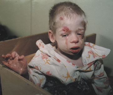 Лена была просто наполнена страхом: она долго не шла ни на какие контакты, боялась людей, занятий, игр, купания. Она заворачивалась в простыню, залезала под одеяло и даже под матрас. От каждого человека Лена ожидала агрессии. Она билась головой о прутья кровати, раздирала на голове незаживающую рану и обмазывала экскрементами себя и все вокруг. Душераздирающе кричала.