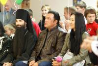Вихованці зустріли гостей квітами, сфотографувалися на пам'ять і дали невеликий концерт, після чого Стівен Сігал і отець Варсонофій роздали подарунки.