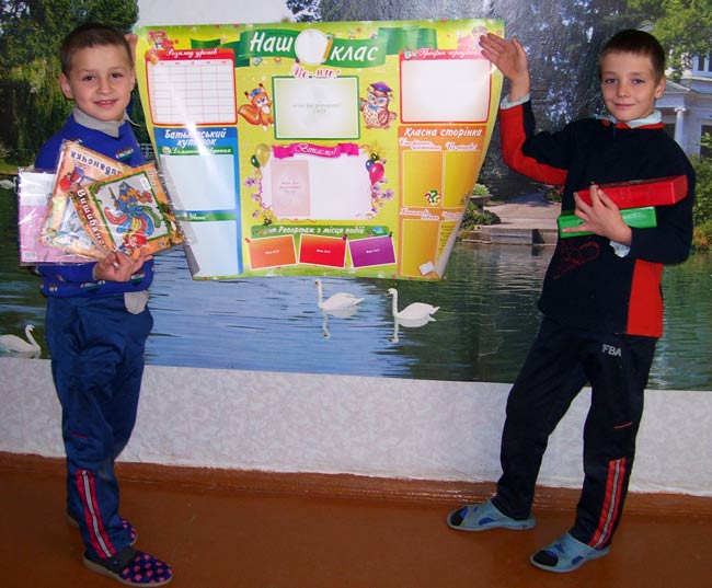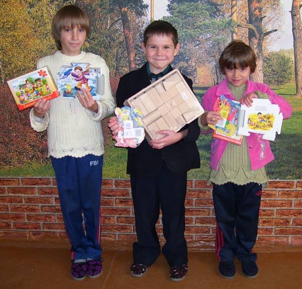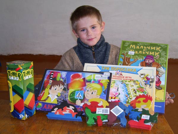 Благодаря пожертвованию Эрика С. и Марино П.из США для детей младших классов закупаются конструкторы, развивающие игры, канцтовары, строительные деревянные наборы, а если у кого-то из детей одежда или обувь пришла в негодность - то мы обновляем деткам гардероб.