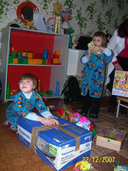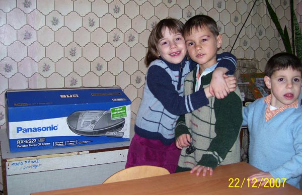 Во-первых, Андрей из Лондона. Этот молодой человек, сам родом из Полтавской области, выслал около $600 для организации праздника для детей. На эти деньги мы закупили 2 магнитолы Panasonic, 2 DVD плеера с караоке и микрофонами, две говорящие азбуки, металлические модели машинок, деревянные и металлические конструкторы и много-много других качественных развивающих игрушек, которые вы можете увидеть в фотоотчёте.