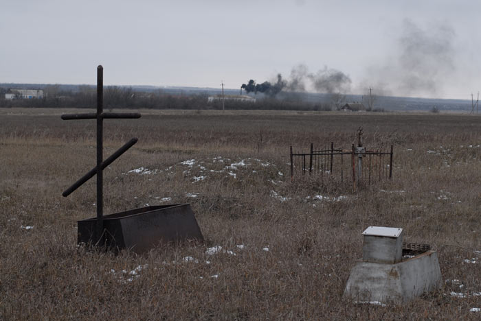 Детское кладбище. На заднем плане вдали - корпус для прикованных кпостели детей, и дым от котельной