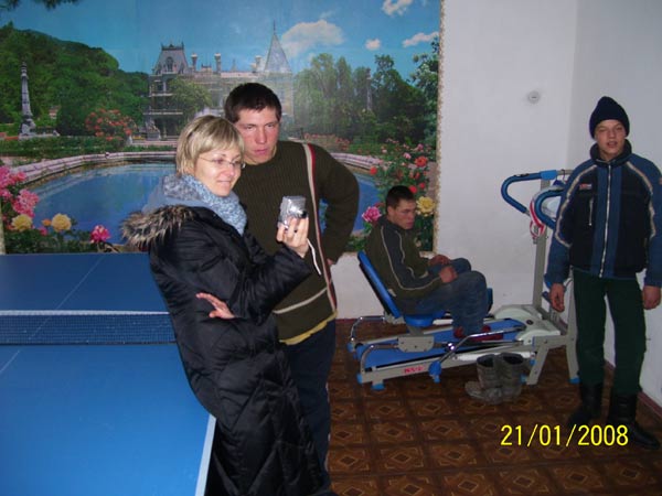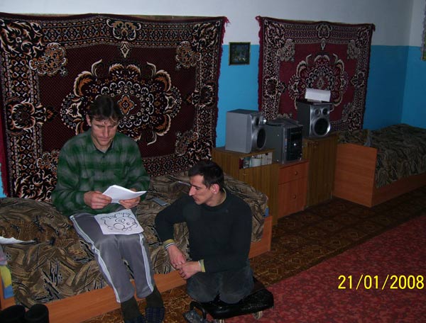 Меня впечатлил Алёша Романов – подросток лет 15, с последствиями ДЦП и нарушениями речи. Ещё в первый наш приезд в Калиновку, когда я увидел Алёшу в палате для лежачих детей, я обратил внимание на его взгляд. Это не был взгляд ребёнка с диагнозом «идиотия», по словам персонала совершенно необучаемого. Да, Лёша говорит с большим трудом – но, пообщавшись с ним, понимаешь, что это результат ДЦП, а не умственной отсталости. При желании Алёшу можно понять. К примеру, Лёша внезапно собрал в стопку все книги (их было 12), и принялся их считать. Я прислушался, и смог уверенно разобрать его счёт. Алёша правильно сосчитал до 12. Затем он стал узнавать и безошибочно находить многие буквы в тексте. Это меня поразило. Ребёнок, который около 10 лет находится в детдоме для умалишённых, в огромной группе из 30 практически не управляемых пацанов, не имея никаких возможностей для реабилитации, подаёт мне знак: «Я –личность! Я – не растение! Я умею считать! Я ещё чему-то смогу научиться! Помогите мне выкарабкаться из этой ситуации!!!»