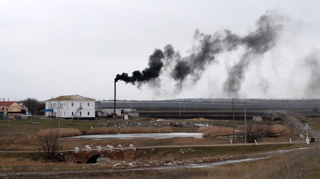 Подъезжаем к интернату. Перед мостиком останавливаемся, фотографируем издали корпус для лежачих детей. На фоне трубы от котельной, с которой валит густой чёрный дым (отопление на мазуте), старинное здание смотрится сюрреалистично. Я вспоминаю рассказы Дэвида, ныне американца, предки которого, немцы-меннониты, были хозяевами имения Штейнбах (Калиновка). С 1830 года и до революции это имение было одним из самых богатых в округе. Думаю, читателям будет интересно взглянуть на то, как выглядело имение около 100 лет назад и как выглядит сейчас.