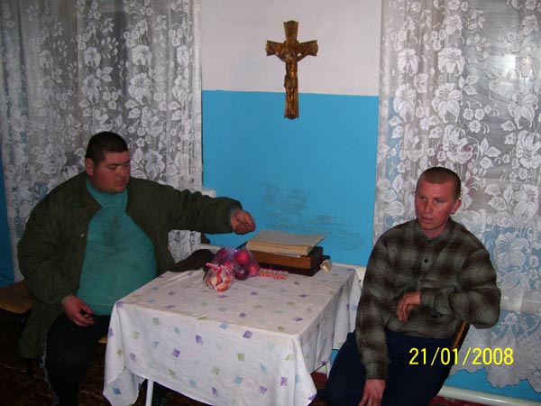 Из 156 воспитанников детдома 46 воспитанников имеют возраст 18 -38 лет. Живут эти ребята в отдельном корпусе. Около десятка из них весьма неплохо адаптировались к жизни, способны ухаживать за собой, выполнять простую работу на ферме и даже получают зарплату. Неформальным лидером этой молодёжной ячейки является Антон, который живёт в Калиновке с четырёхлетнего возраста, вот уже более 30 лет. Беседуя с Антоном и его другом Сашей я не переставал удивляться их рассудительности, столь редкой для такого места как этот детдом. Антон говорил неспешно, уверенно, и его слова имели смысл. В комнате, где живёт он и ещё три парня, есть музыкальный центр, телевизор и DVD, у Антона есть мобильный телефон. На стене висит крест с изображением Иисуса Христа, а над кроватью Антона – маленькая иконка. Кто-то из ребят нашёл крест в полуразрушенном доме в соседнем селе, а иконку Антону подарили. В церкви никто никогда не был, да и религиозные конфессии практически не интересуются Калиновкой (во всяком случае за последние несколько лет никто не интересовался). Ближайшая православная церковь находится в 40 км. Удивительно, но Антон молится каждый день после обеда. Ему говорят, что Бога нет, а он верит в Него.