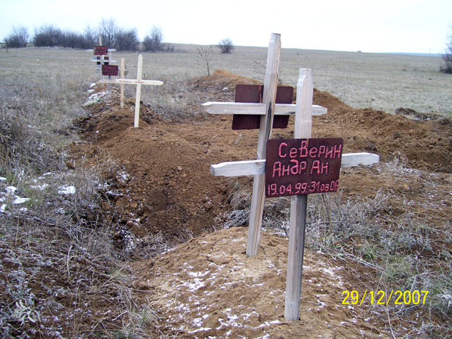 За два часа мы «долетели» от Запорожья до Калиновки. В то время как в наш родной город был покрыт толстым снежным покровом, в Калиновке не было ни снежинки. Подъезжая к интернату, мы решили посетить кладбище, на котором покоятся умершие воспитанники детского дома (из числа тяжело больных в детдоме умирает обычно 8-12 детей в год). Увиденное произвело неизгладимое впечатление. За почти пятидесятилетнюю историю Калиновского детдома здесь было похоронено около 400 детей. Поражает то, что лишь единичные могилки ухожены и имеют памятники. Большая часть территории кладбища – практически сровнённые с землёй небольшие холмики, без табличек. Кто эти детки? Знают ли их родители, где находится могилка их чада?