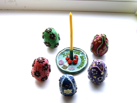 Недели три назад я делала в отделении фотографии детских работ наших занятий арт-терапии. Больше всего работ было у Леры. Я делала снимки, а Лера доставала всё новые и новые свои работы. Это и лепка, и аппликации, и бисер, и макраме, и петриковская роспись.