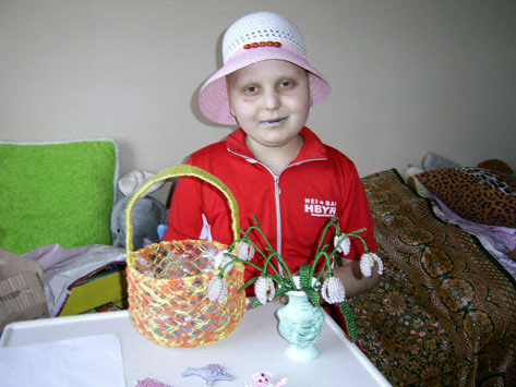 А это, пожалуй, последняя фотография Лерочки. Лера со своими поделками у себя в палате: