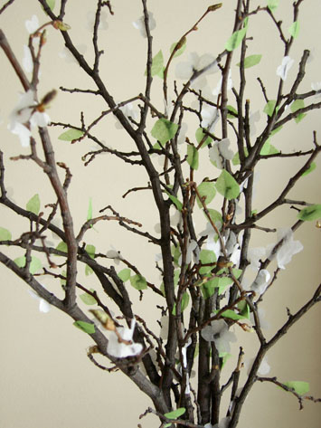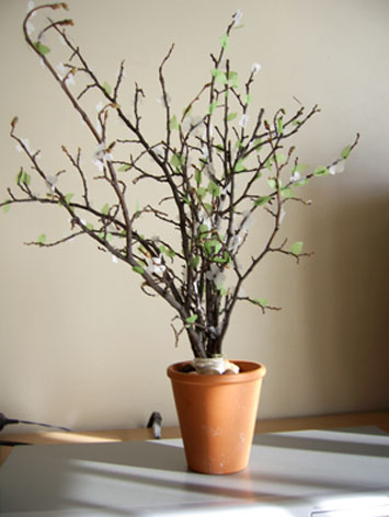 Дерево-аппликация. Листочки на нём выполнены из подсушеных цветков акации.