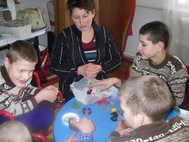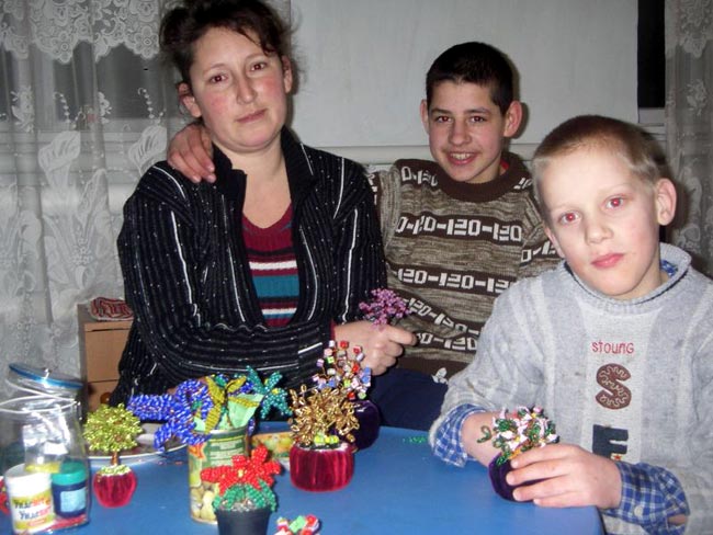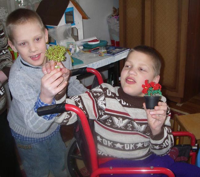 Я не видела чуда восхитительнее, чем эти маленькие цветы и деревца, которые дети демонстрируют с такой гордостью. Еще и потому, что эта красота создана благодаря десяткам людей, которые живут в разных странах и никогда не видели друг друга. Я мысленно благодарю тех, кто ежемесячно перечисляет деньги, чтобы оплатить труд Лили и трех других воспитателей. Я знаю, что некоторые спонсоры продолжают ежемесячно перечислять деньги, несмотря на то, что сумма пожертвования стала ощутимой для них. Я представляю себе весь процесс от сбора денег до закупки партии бисера группой киевлянок и пересылке его в Запорожье. Я вижу игровую комнату — которой не было еще год назад - с игрушками и множеством красивых подделок, сделанных руками ребят. Поделки уже некуда ставить — так их много!