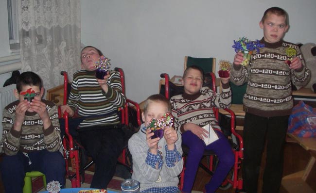 Поделки мы решили дарить тем людям, которые постоянно помогают Калиновке: нашим спонсорам из Украины (Сергею, Виктории, Пугаченко Тане, Ленинской Наташе, Ирине Чолак и многим другим), Голландии (Айна Сутра, Надя Зелитченко, Ольга Шеломова, Алина Лис и голландская организация “HOMICO”, Оксана Ярош), Германии (Ольга Геращенко), Швейцарии (Ирина Мореси), США (Дэвид Судерман) и многих-многих других.
