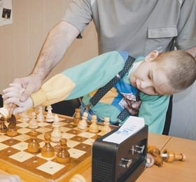 Все ждали Мишу Пинчукова. Ждали и побаивались. Опять Мишка разобьет всех наголову. Это несмотря на то, что он, ребенок, играет в подростковой группе. Мишу усадили за первый стол. Шахматы у него и вправду оказались особенные, для слепых. С отверстиями под фигуры. Папа встал за сыном и приготовился. Игра началась. Миша тянулся к фигуре и пальцем показывал, куда ее переставлять. Папа послушно двигал то пешку, то слона. На седьмой минуте случился мат. И так четыре раза подряд. Все. Миша опять стал победителем турнира. Ему вручили игру "Менеджер" и повесили типовую медальку.