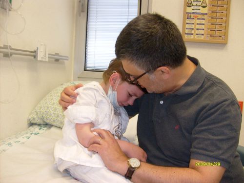 Как мы со Светой смеемся – донор Данькин был еще тот ловелас. Потому что Данька у нас просто жених и все тебе. Идут по лестнице, на встречу соседи с двумя дочками. Спустились, Данька толкает Руслана "папа, а правда они красивые? Особенно та, с кучеряшками!". А еще Данька очень любит своего врача – профессора Резника. Один раз надо было набрать кровь на анализ, а венки то уже исколоты еще дома. Мучились медсестры, но не смогли попасть. Данька плачет, отбивается. Пришел Игорь Борисович, о чем-то своем с Данькой пошептались, раз – и набрали. А Данька к нему потом прислонился и плачет.