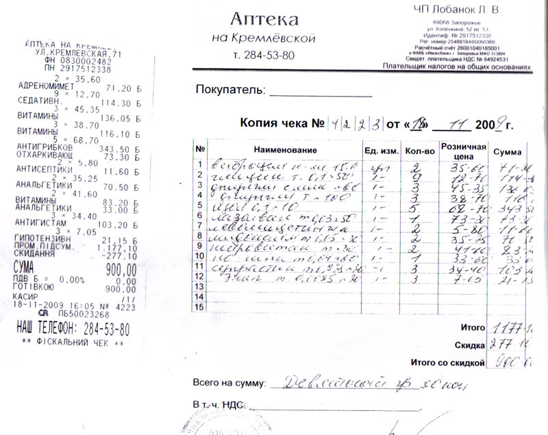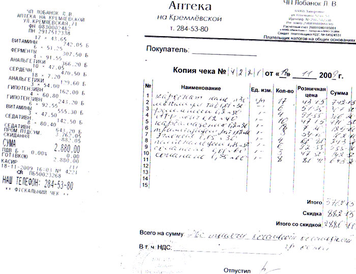 На прошлой неделе мы передали врачу детского дома лекарств на общую сумму 3780 грн (см. чек №1, чек №2). Среди закупленных препаратов – антигрибковые, отхаркивающие, кардиологические препараты и витамины. Этих лекарств наиболее нуждающимся в них детям должно хватить на 1 месяц. Затем вновь станет вопрос закупки лекарств.