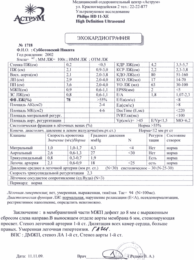 К сожалению, эхокардиографию сердца (Доплер) сделать в больнице бесплатно не удалось, по причине поломки датчика к УЗИ аппарату. Пришлось оплатить это обследование для трёх деток в частной клинике. Обошлось это в 360 грн. В результате, состояние 2 детей признано более-менее удовлетворительным, а ситуация с семилетним Никитой - намного серьёзней. У ребёнка врождённый дефект перегородки, и прогноз на будущее очень неблагоприятный. Проще говоря, без операции на сердце ребёнок может погибнуть.