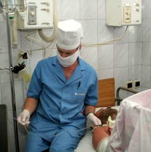 В этом отделении находится и 81-летнняя бабушка из одного из сел региона. Старушка споткнулась и упала на раскаленную печку- сначала загорелись волосы. потом халат на ней. По словам врачей, лечить бабушку придется долго, Говорят, что лечить молодых пациентов намного легче - у них все процессы в организме происходят намного быстрее.