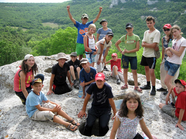 Не дойдя нескольких сотен метров до красивейшего горного монастыря Шулдан, проводникам все-таки удалось отыскать нужный поворот, и мы вышли к Пятой балке. И снова установка лагеря, походы на родник, сбор дров, обед… Если честно, то особого желания куда-либо идти в этот день не было ни у детей, ни у взрослых. Но проводнику Сергею удалось столь красочно разрекламировать пещерный город Эски-Кермен, расположенный от нашей стоянки всего в паре часов ходьбы (подумаешь!), что в лагере осталась лишь пятая часть группы. А рассказывать что-то об рукотворных лабиринтах Эски-Кермена, все равно, что танцевать об архитектуре – это надо увидеть только своими глазами.