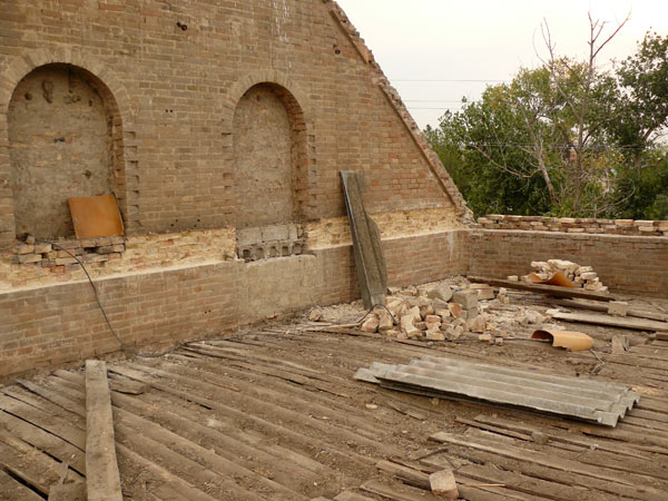 Кровля разобрана, торцы фронтонов реставрированы для укладки новой кровли
